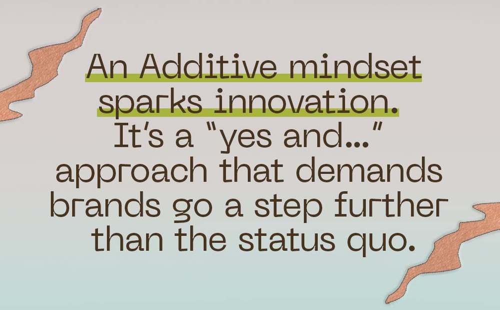 An additive brand seeks to give back by contributing benefits that raise the standard of the exchange. It makes products and experiences that people are proud to associate with, and it chooses to educate and illuminate rather than obscure or confuse. Its language respects attention instead of gaming it, so participation feels lighter and worth repeating.